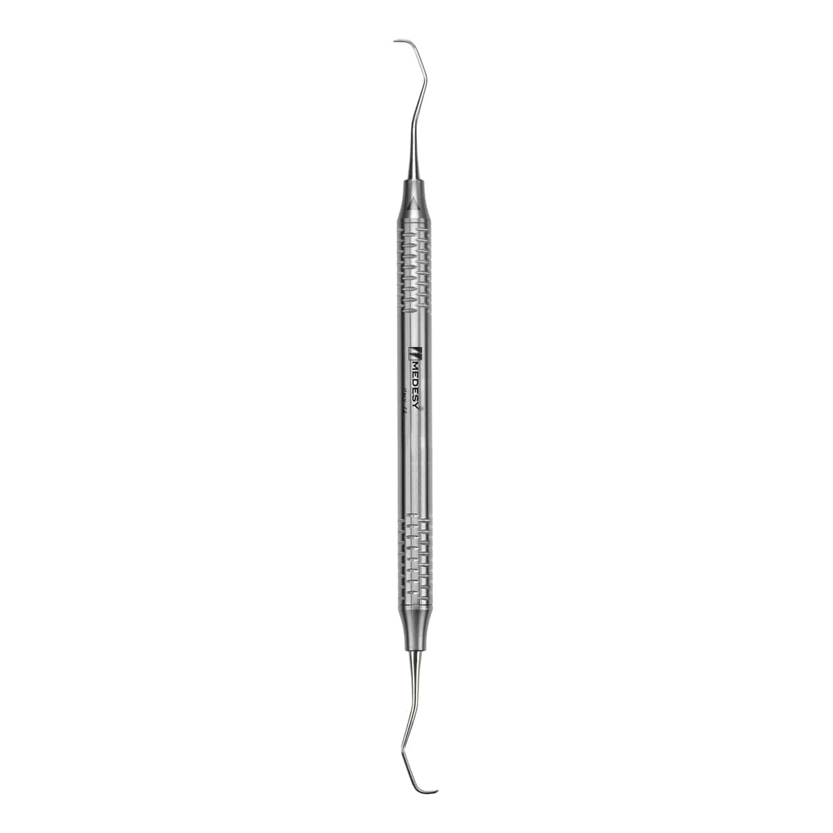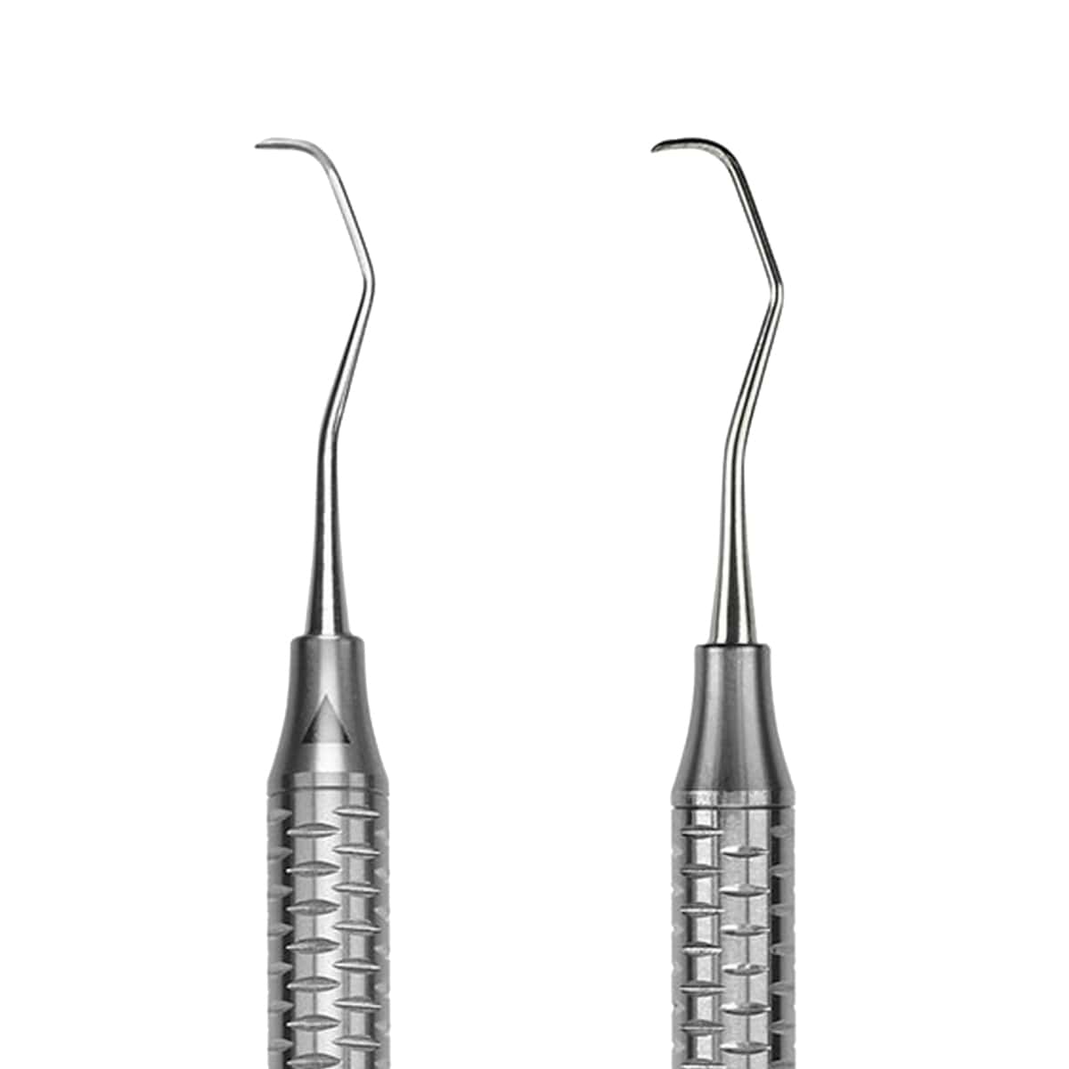 La cureta Gracey está diseñada para realizar con eficacia una limpieza y un raspado de zonas específicas. Cada cureta Gracey tiene las hojas orientadas específicamente para tratar una zona específica, afiladas solo por un lado con una punta doble, una inclinada 70° con respecto a la superficie de la raíz del diente a tratar.