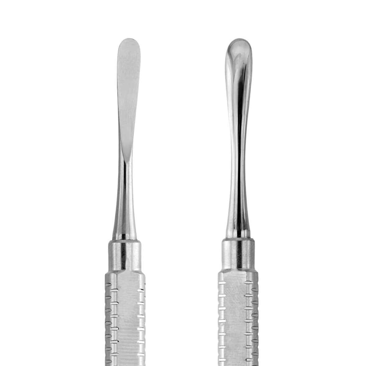 Ambas hojas de forma redondeada, una de 4,5 mm y la otra de 5,5 mm montadas en nuestro icónico mango Dalila, pero de forma ligeramente aplanada, para dar mayor estabilidad al dentista durante las fases de levantamiento de los tejidos del periostio.Eficaz en las fases de levantamiento gracias a su afilado preciso y cómodo para el paciente por la ausencia de bordes cortantes en la parte trasera de las puntas.