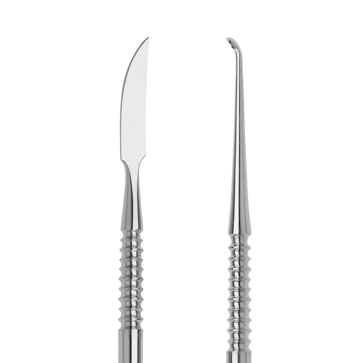 Una línea de instrumentos para modelar de acero inoxidable con un mango con una empuñadura especial pensada para favorecer el agarre. Los instrumentos con dos puntas combinan espátulas, puntas con hoja y puntas para modelar.