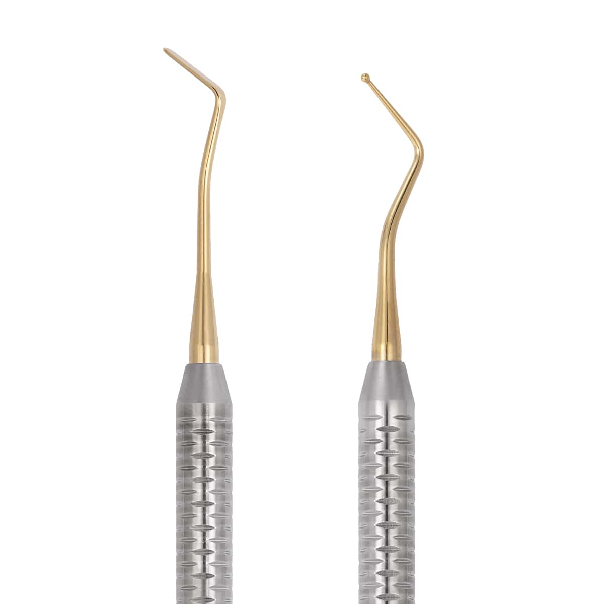 Línea de instrumentos de acero inoxidable con las puntas recubiertas de TiN (nitruro de titanio). Este tipo de revestimiento reduce la adherencia del composite al propio instrumento, lo que hace más fácil el modelado y la limpieza del instrumento después de su uso.