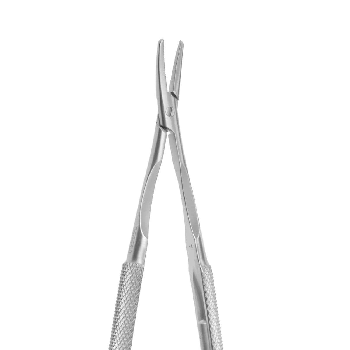 • Punta dentada que aumenta la capacidad de agarre y retención del portaagujas.
