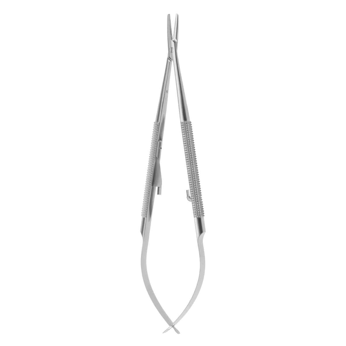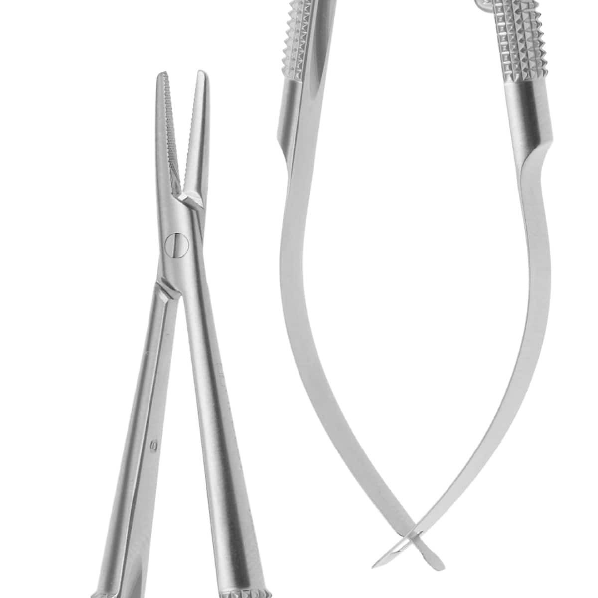 El diseño del mango presenta un relieve piramidal que ofrece un agarre cómodo y seguro también de superficies húmedas. El sistema de bloqueo está garantizado por el cierre MED-LOCK: innovador por su simpleza y delicadeza en el funcionamiento. Todos los modelos son compatibles con agujas 4-0, 5-0, 6-0.