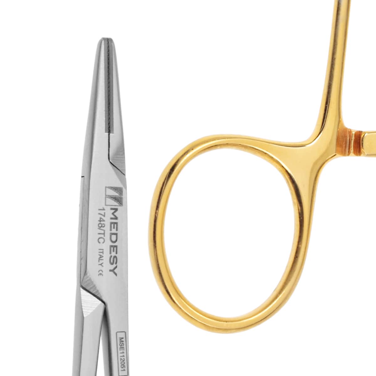 El portagujas Halsey es un modelo con mango de tijera con punta fina. Sin embargo, a pesar de ello está dotado de un dentando notable que aumenta el agarre y la funcionalidad. Es compatible con agujas de 3-0, 4-0, 5-0, 6-0.
