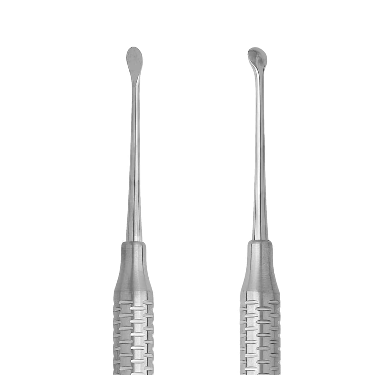 Eficaces en las fases de raspado y limpieza alveolar y de las bolsas periodontales, y otro lado abombado y perfectamente liso para no dañar los tejidos circundantes.