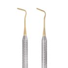 Los instrumentos para composite Goldstein se caracterizan por sus puntas finas y pequeñas. Son instrumentos con doble extremo que combinan una espátula para composite por un lado y un obturador o una miniespátula por el otro.