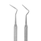Lima periodontal de punta doble, dotada de una amplia parte dentada y cortante, diseñadas para la retirada de tejido granulomatoso de las bolsas supraóseas einfraóseas.