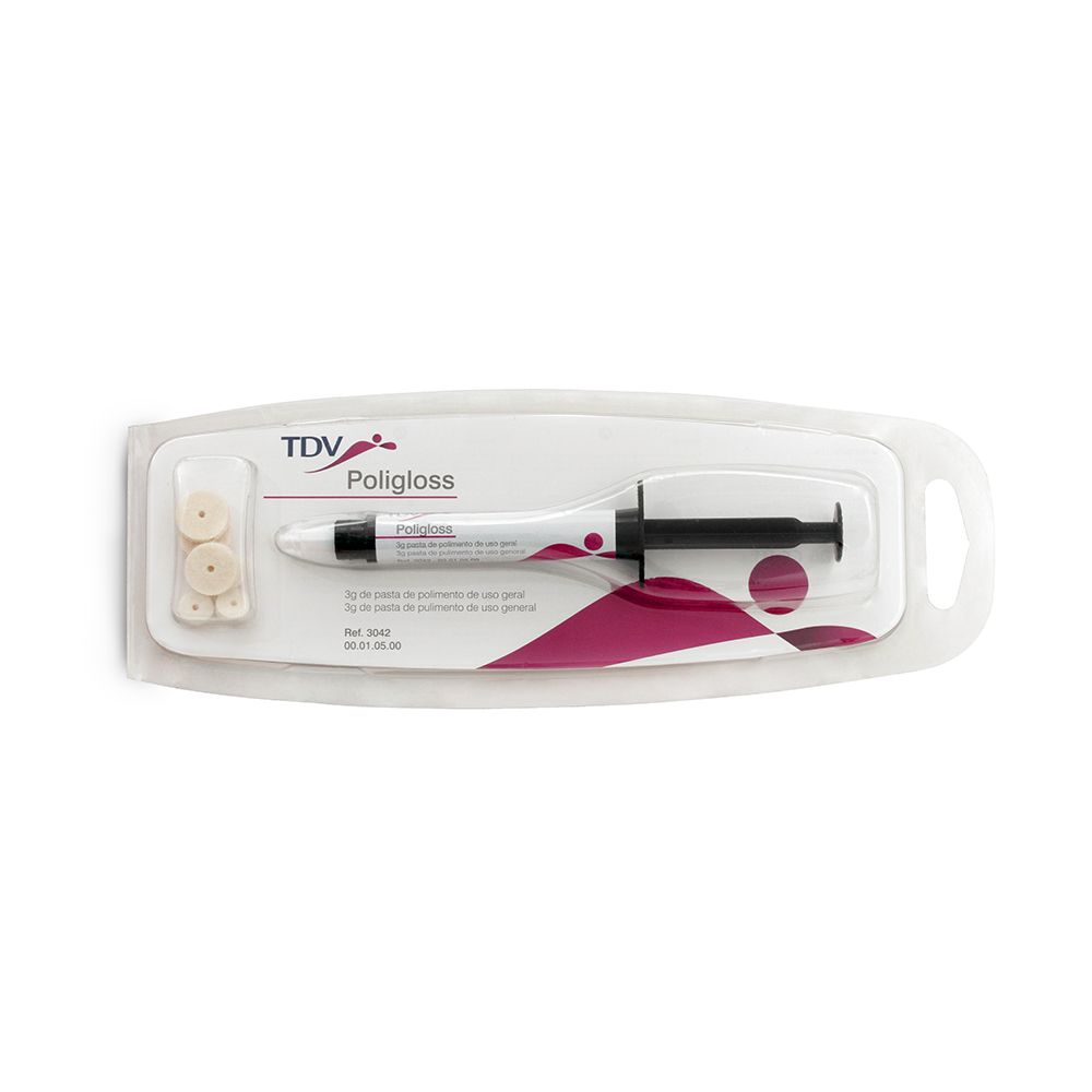Pasta de pulimento para uso en la clínica general odontológica y en procedimientos de laboratorio. Poligloss propicia un excelente brillo en resina, amalgama y metal.