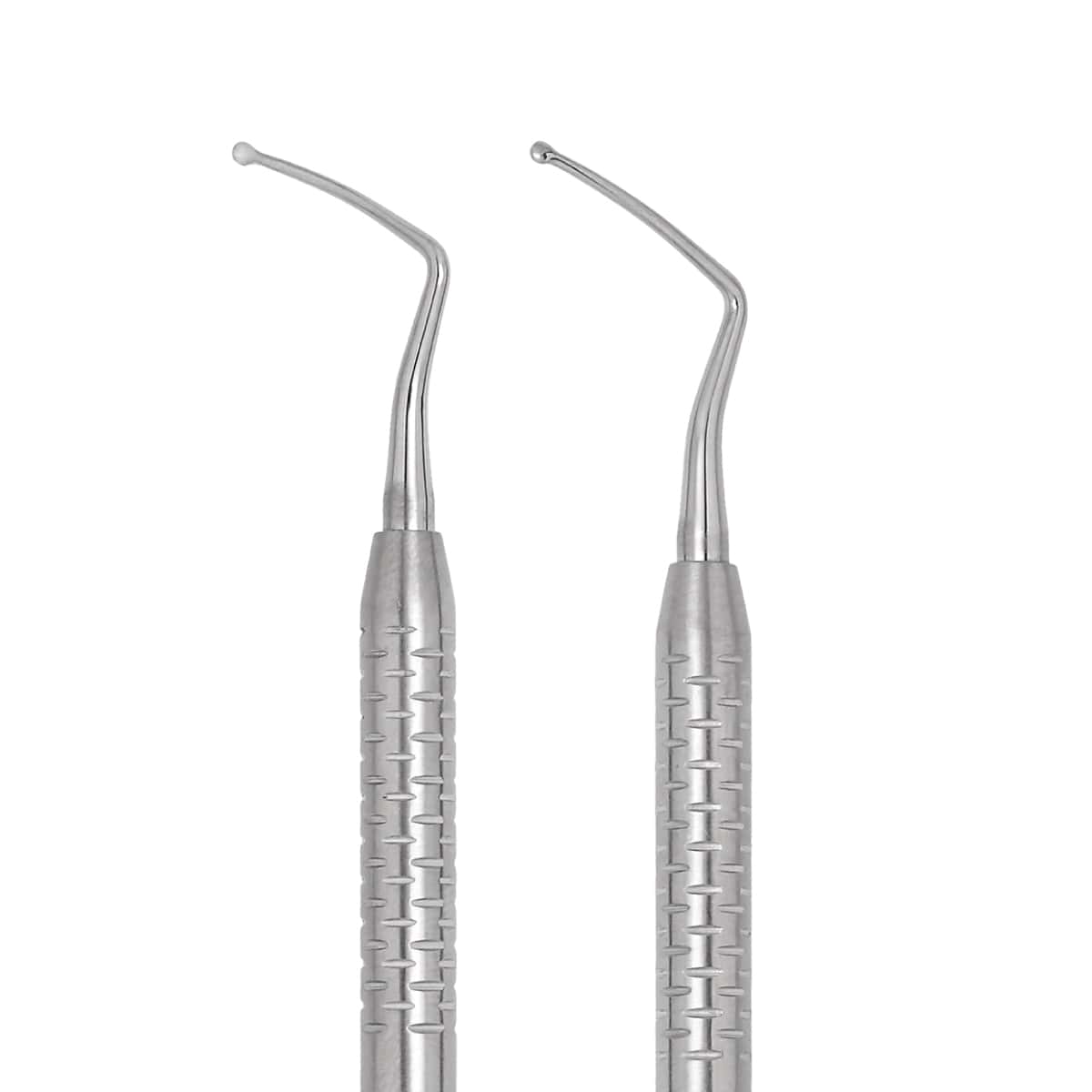 El explorador endodóntico con doble punta de Medesy viene con un mango de acero inoxidable Dalila de 6 mm de diámetro, poco voluminoso y muy manejable. Las puntas están anguladas y las hay de distintas dimensiones. Pueden ser redondas u ovaladas según la limpieza del canal a realizar.