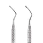 El explorador endodóntico con doble punta de Medesy viene con un mango de acero inoxidable Dalila de 6 mm de diámetro, poco voluminoso y muy manejable. Las puntas están anguladas y las hay de distintas dimensiones. Pueden ser redondas u ovaladas según la limpieza del canal a realizar.