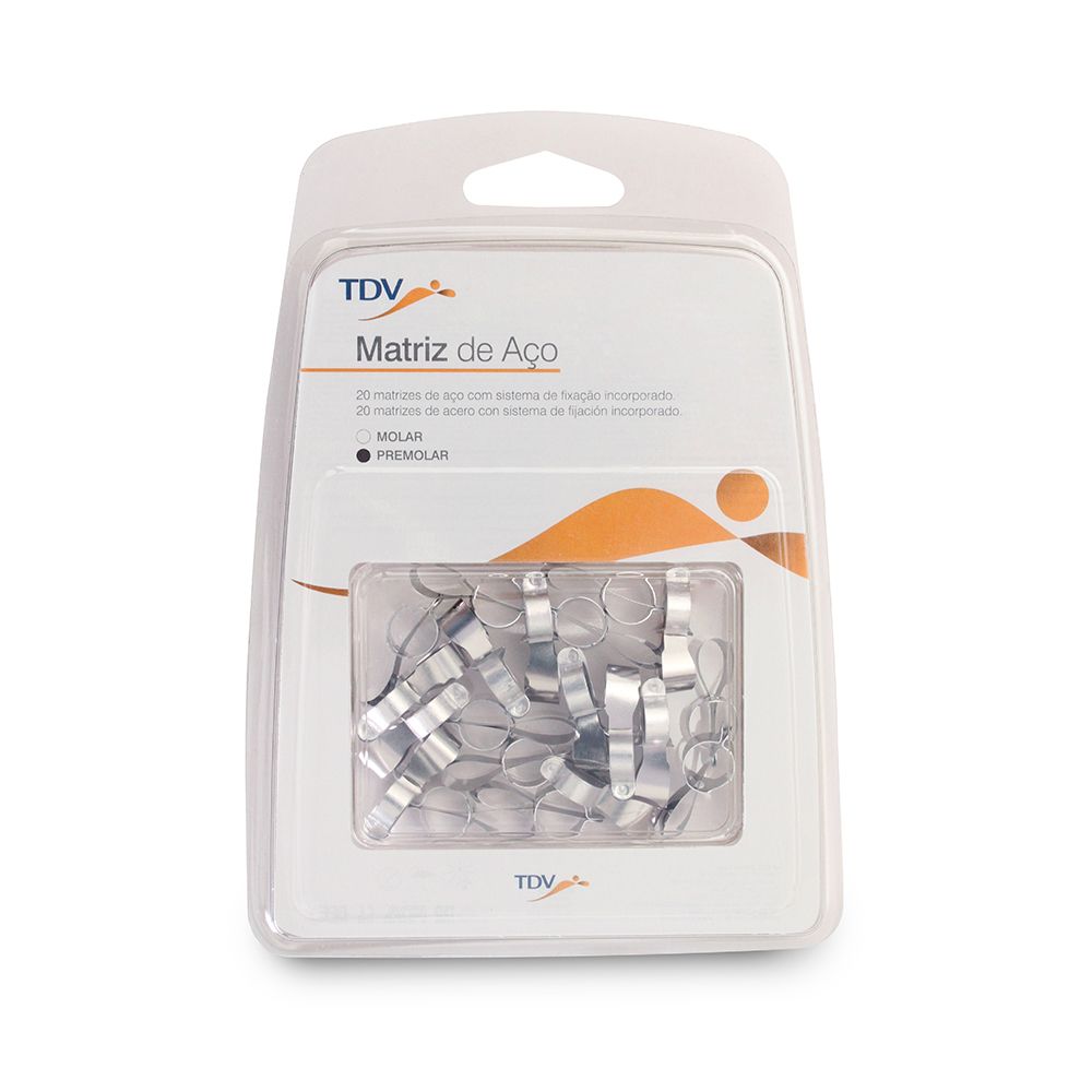 Las Matrices para restauraciones Clase II de TDV son pre-contorneadas y poseen un sistema de fijación incorporado que permite una mejor adaptación al tamaño del diente, fijándolas firmemente y dispensando del uso del portamatriz; restableciendo los puntos de contacto y crestas marginales optimizando así la calidad de la restauración y reduciendo el tiempo de operación.