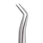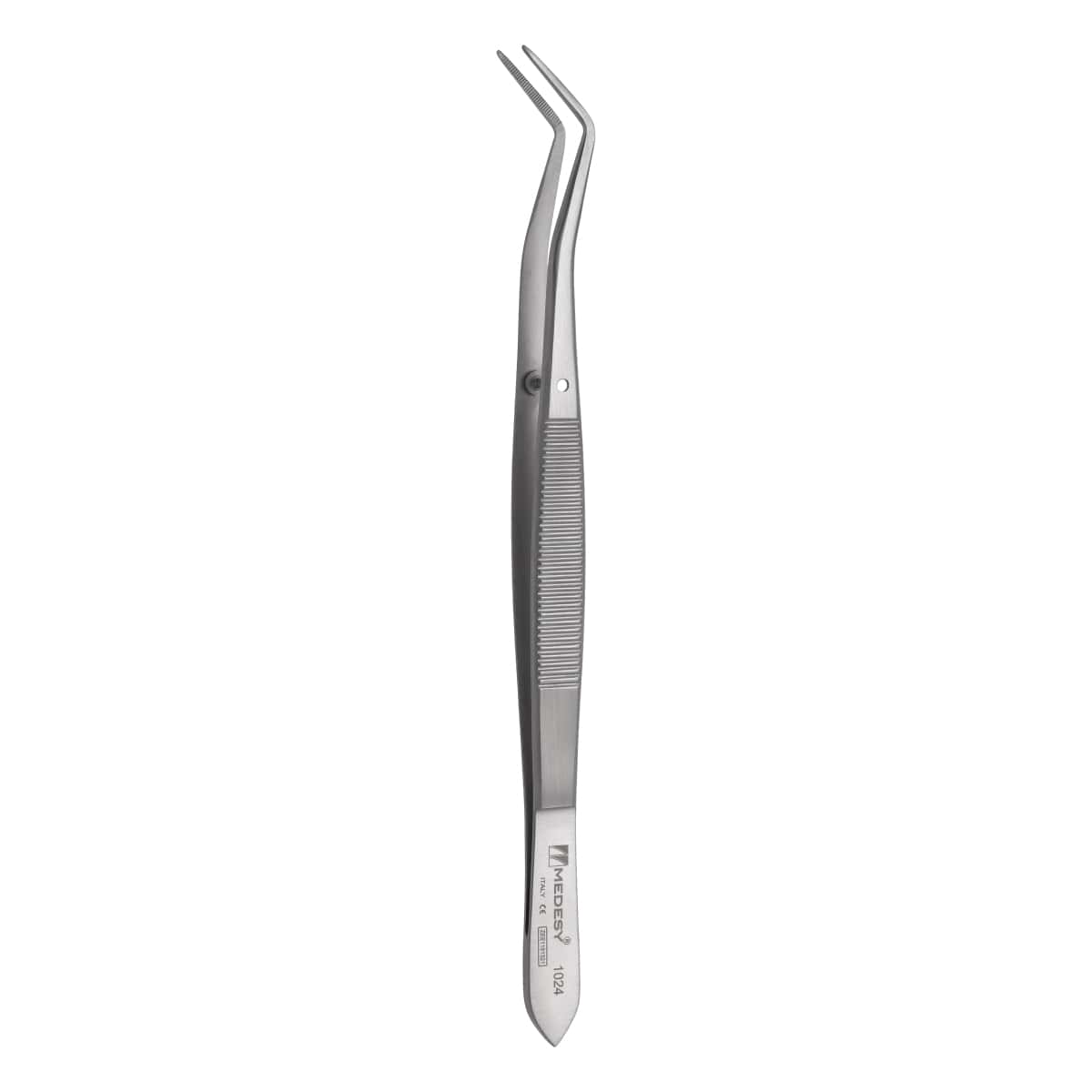 Instrumento preciso para sujetar y manipular materiales dentro y fuera de la cavidad bucal durante procedimientos odontológicos.